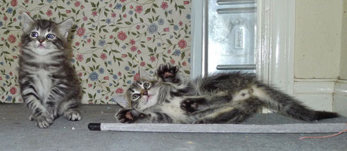 As I was taking some pictures of my kittens playing in the bath with a ball, I was lucky enough to get one of these rare action shots where both kittens looked great.