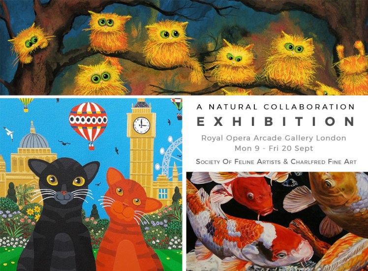 ‘A Natural Collaboration’: A Celebration of Fine Art by The Society Of Feline Artists and Charlfred Fine Art is a mixed show with work from 47 artists showing landscapes, wildlife, marine, botanical, still life and domestic animals as well as sculpture and Jewellery. And of course cats by members of S.O.F.A.