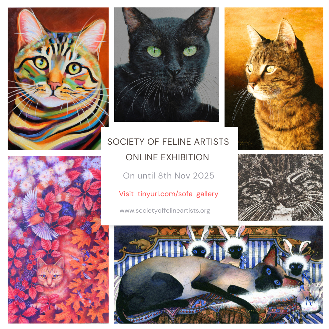 The Society of Feline Artists is proud to present our Winter Exhibition, on now in our online gallery. Celebrating the beauty of both wild and domestic cats, from majestic tigers to playful kittens, discover the artistry that captures their spirit.