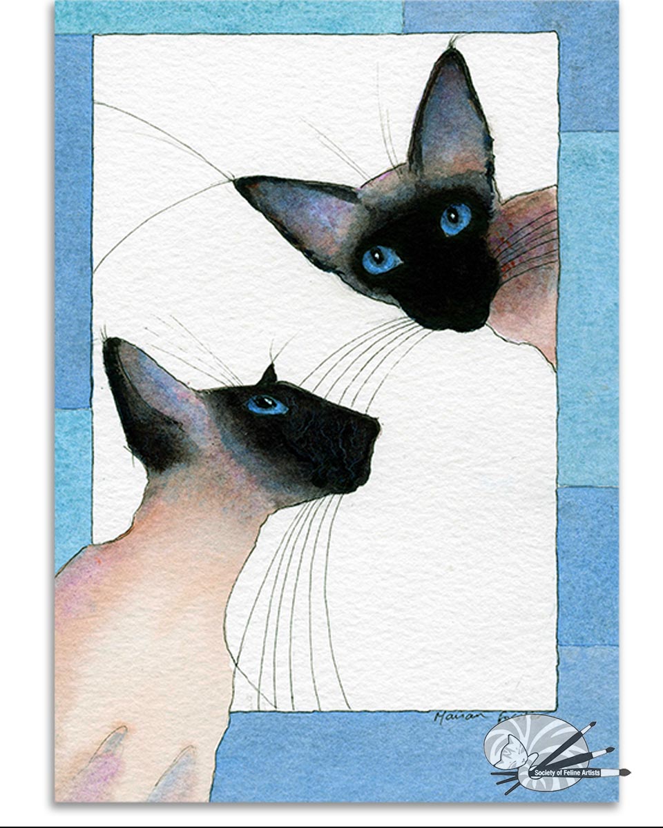 The title says it all – They are always the centre of attention with their beauty, captivating personality and intelligence. I love to paint them in a stylistic manner accentuating their lovely profile, markings and blue eyes.
