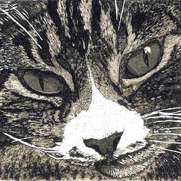 Alex specialises in limited edition etchings and linocuts. Her feline subjects and their uncontrived surroundings are brought to life in a natural and detailed way.