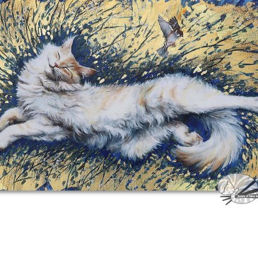 We are delighted to announce that Third Place in Best In Show goes to Madeline Downham S.O.F.A. for her stunning, exuberant mixed-media painting ‘Leap Into Spring’! This piece features an “exuberant smiling cat, leaping happily into Spring life,” with “A House Sparrow… seen escaping the blissful cat’s grasp.” The rich color palette of pale gold, … More Best In Show: Third Place & Honourable Mentions